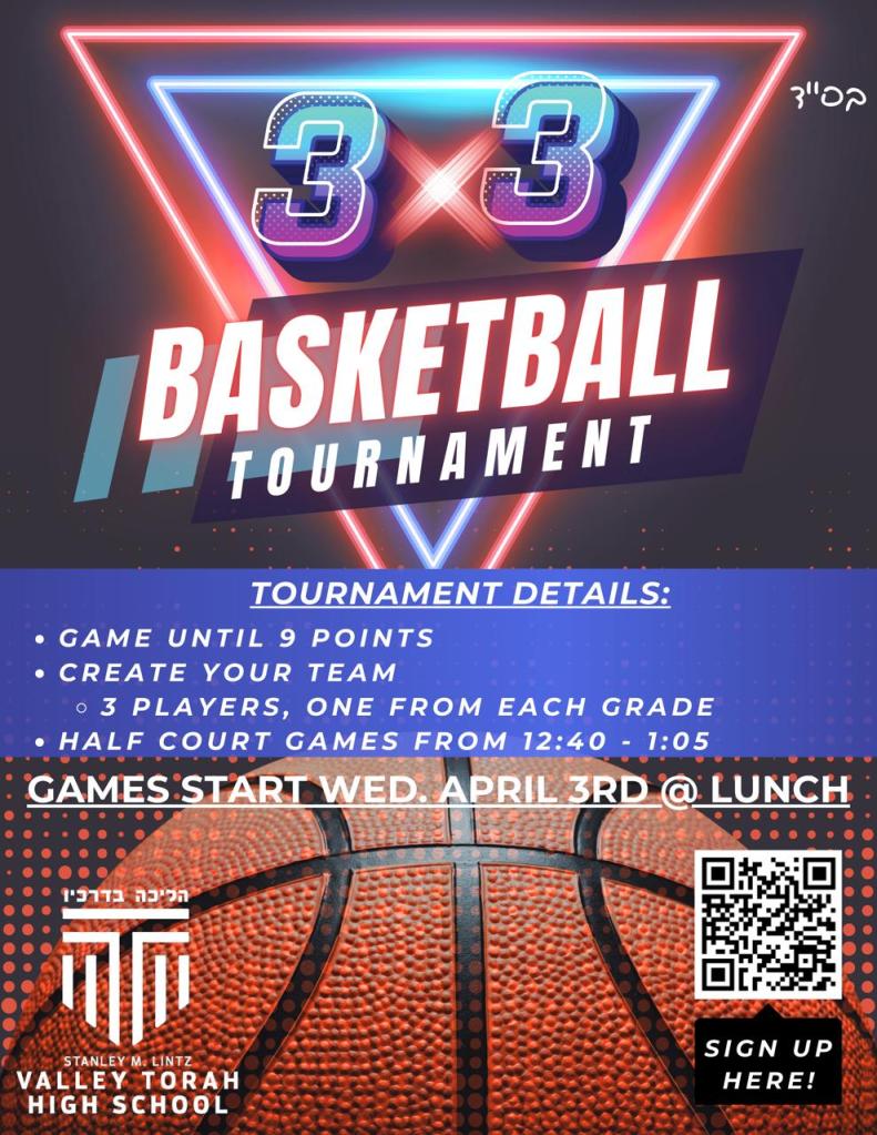 Last week, Rabbi Semmel happily announced the 3v3 basketball tournament that would be taking place on the Valley Torah Sports Court at lunchtime over the next couple of days. Many friends prepared to team up with each other, and excitement stirred in the school. In addition, many students were eager to start the competition as the winning prize included lunch from the restaurant Lenny’s Casita. The event united the students who joined each other on the Sports Court, watching the games and cheering their friends on. The majority of the games took place last week, but on the 11th of April, the championship game took place.